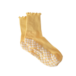The Ciao Bella is your sunshine-soaked studio essential: a buttery yellow grip sock with a feminine ruffle edge and our signature stay-put sole. Inspired by the Italian coast and made for the mat, it’s equal parts sweet and sassy.